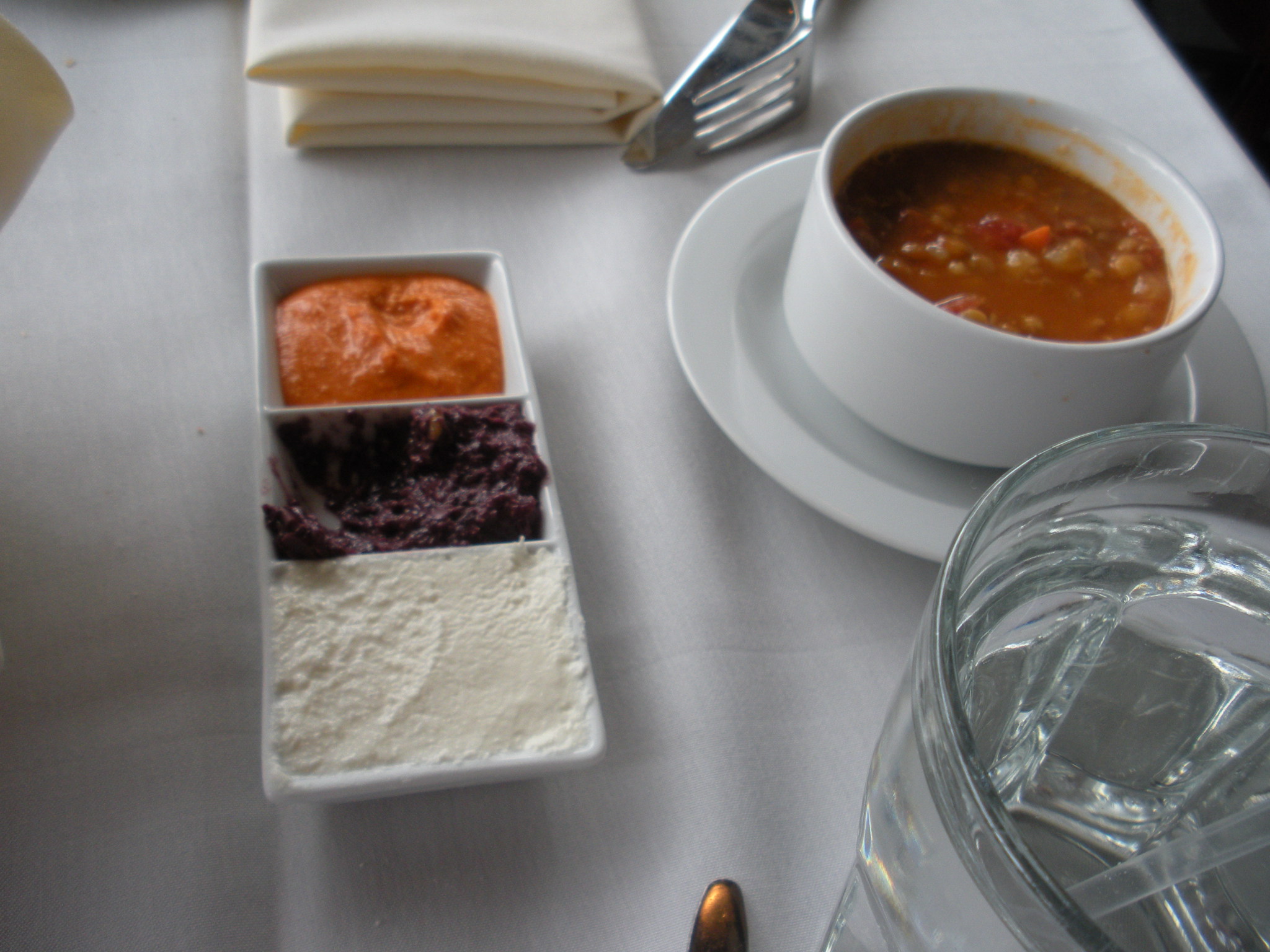 We had lentil soup. It was delicious until Maya started using it as a dipping post for her bread. At that point I figured three sets of germs was about two too many so I took my germy spoon out of the pool.