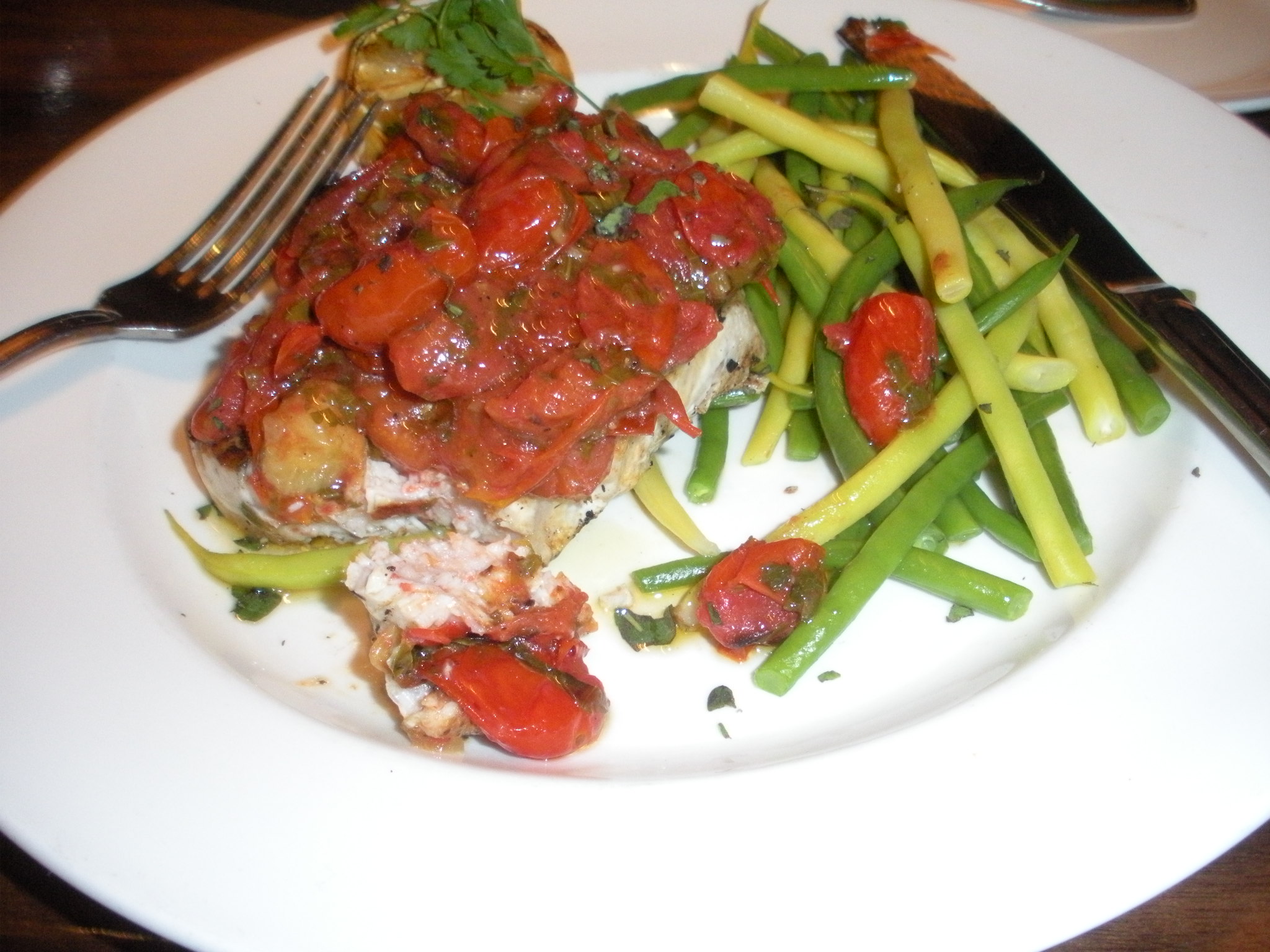 Mesquite Grilled Swordfish with blistered tomato relish and sautéed green beans. It. Was. Delicious. I could have eaten this X 2. Easily.