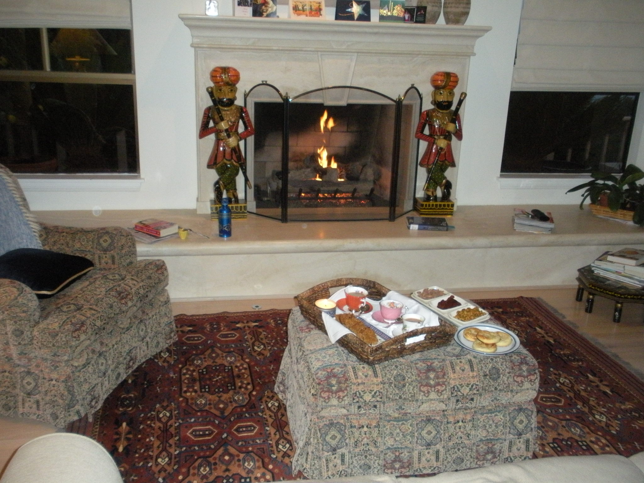 and having tea, crumpets, oatmeal bars, and dried fruit and nuts.