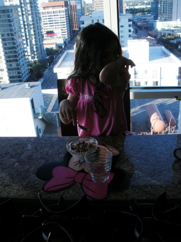 I offered some to Maya and she said, “that granola doesn’t smell very good.”  I guess some of us find the delicious smells of cinnamon and vanilla offensive.  So Maya went with a tried and true bowl of Cinnamon Puffins mixed with Joe O’s.
