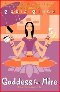 How often do you find and enjoy a book that makes fun of your culture, the state you live in, arranged marriages, and religion too?  Not often, right?  I didn’t think it was possible either until I found Goddess for Hire by accident on amazon.com one day.  You know how Amazon always suggests purchases when you add something to your cart?  Well, I am the idiot who always ends up ordering the suggested books.  And more.  Let’s just say that for me Amazon is like Target…I go in intending to buy toothpaste  and 45 minutes later I’ve spent $100.