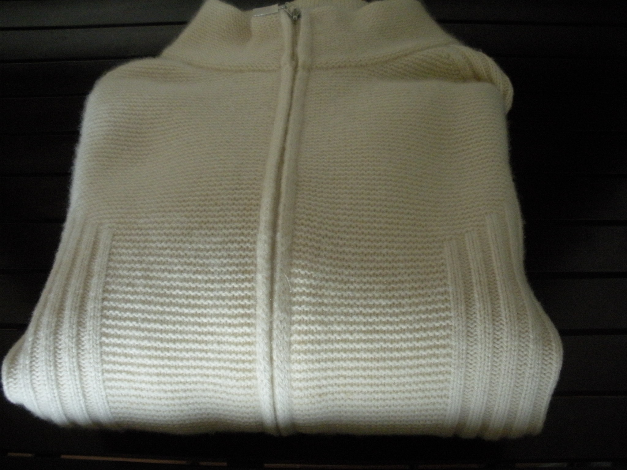 The stains on the arms weren’t gone but the rest of the sweater looked whiter and brighter.  A nice bonus was how fresh the Cleaning Cloth made the sweater smell!