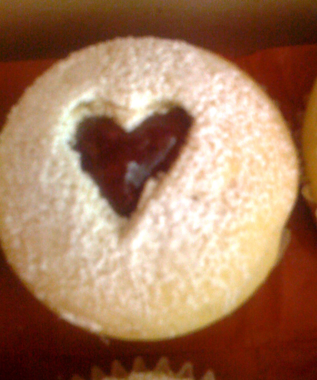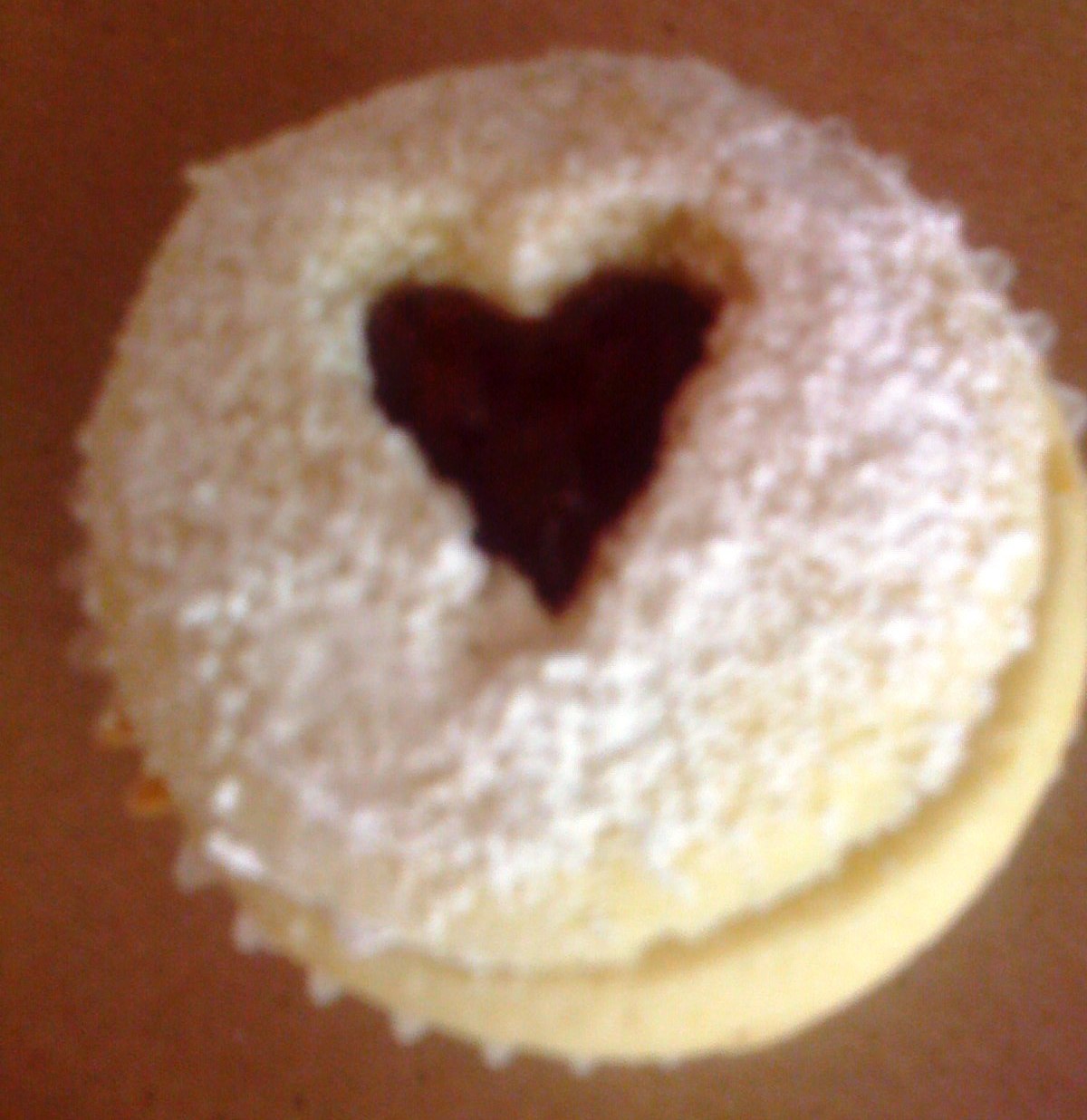 Vanilla frosting with the heart shapes …and love the cakey part…excellent.