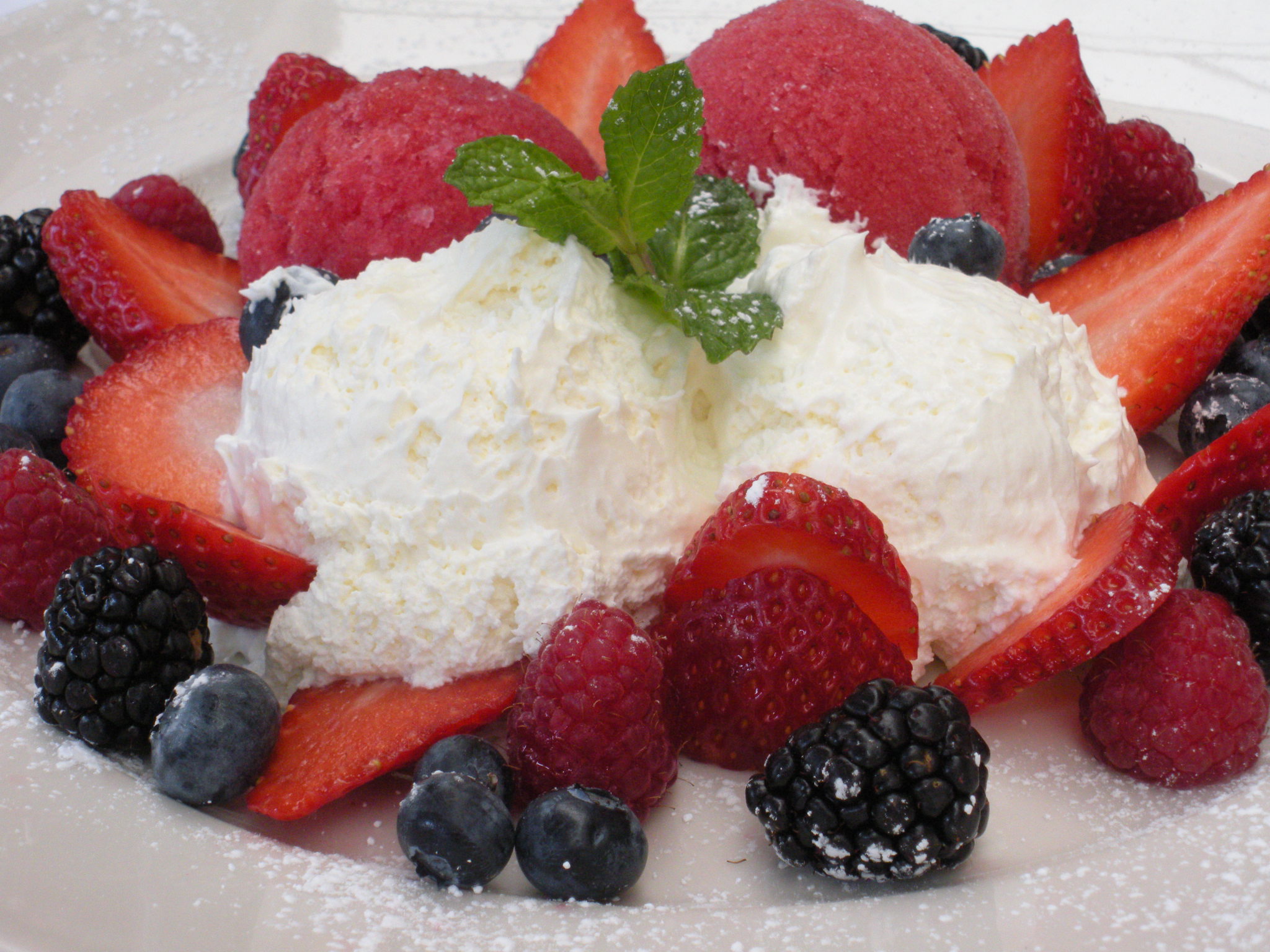 Passion Fruit Sorbet with Whipped Cream and Berries