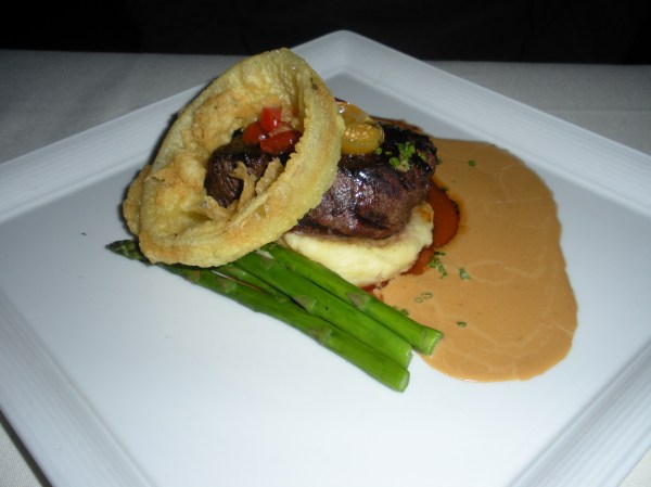 Ali’s entrée came and after a bite he realized they sent him the wrong Petite Filet, but I took a picture because it was so artfully displayed.