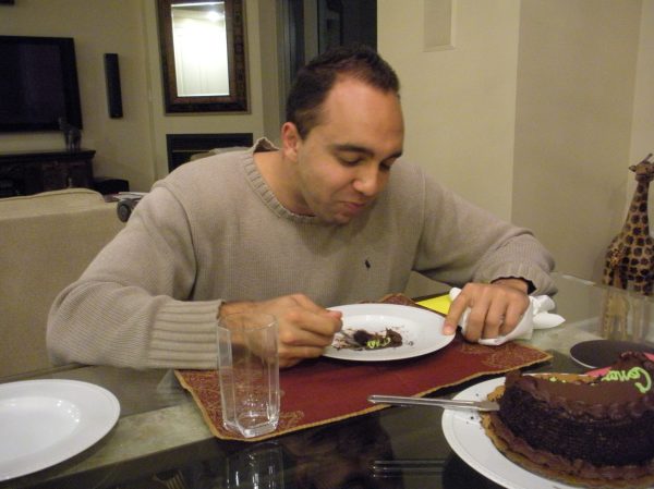 My brother eats dessert only once a year on his birthday so we were all shocked that he decided to partake in some cake.