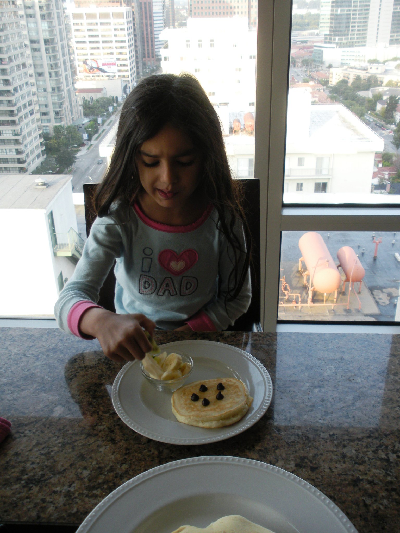 Your daughter is adorable! I love the 5 chocolate chips on her pancake. Too cute!