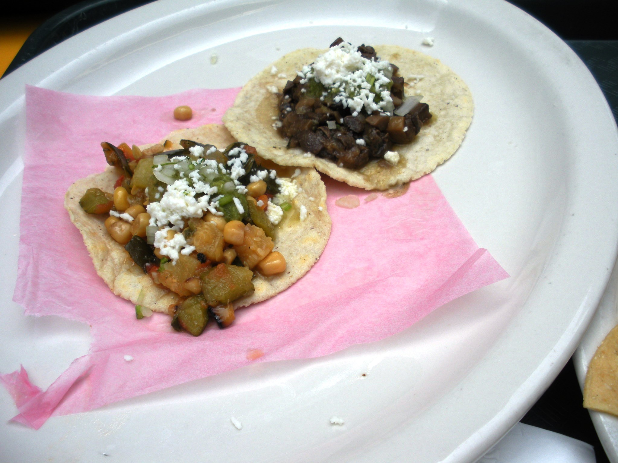 I ordered two tacos, the Champiñones con Epazote and the Calabacitas.
