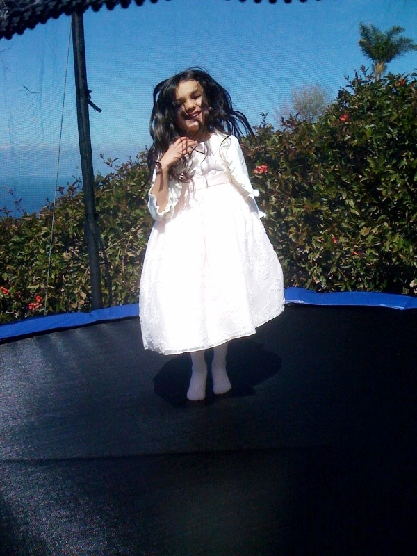 love the blue blue CA sky in the background of the trampoline shot! and maya’s dress and cardigan, such a little fashionista!
