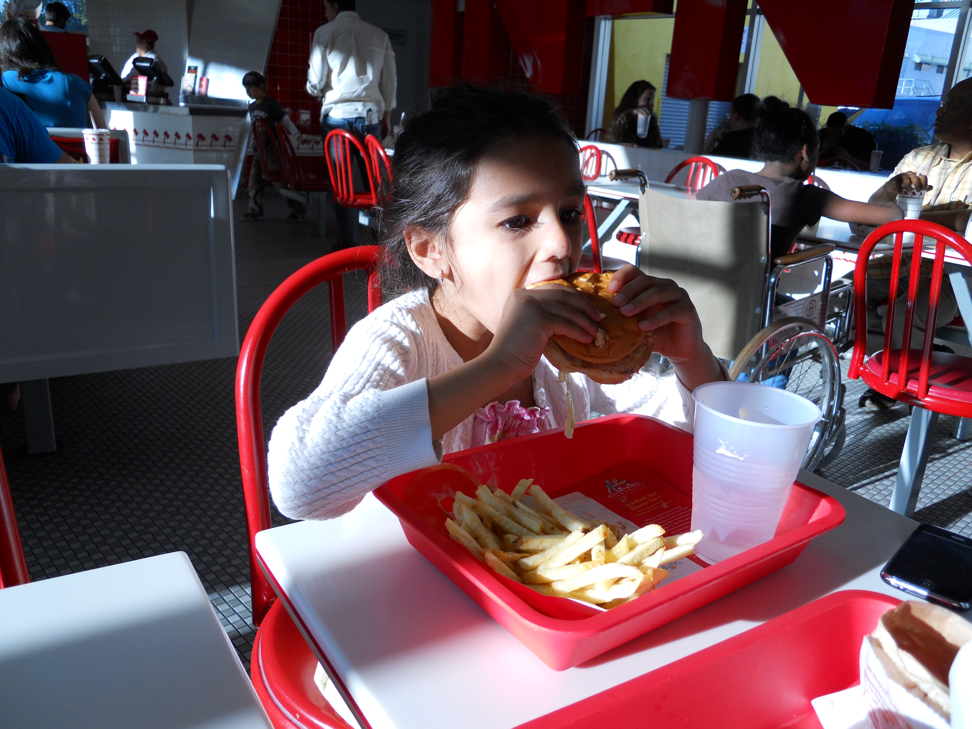 Since a burger and fries can cure pretty much anything, we took Maya to In-n-Out hoping for a miraculous recovery.  From the coughing and the chin injury.