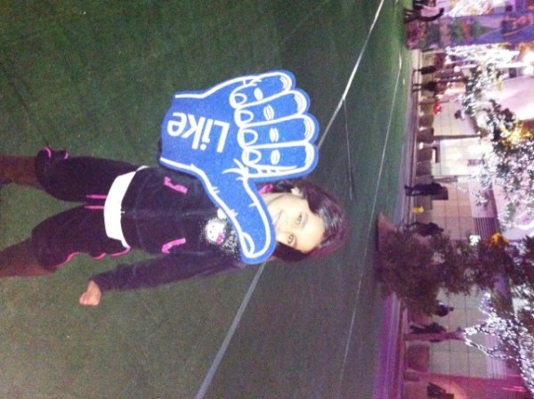 At L.A. Live - Maya + a free foam finger = Happiness Squared