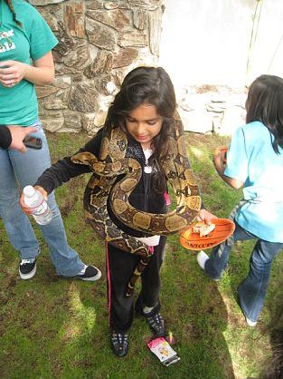 Snake around the neck, party plate in one hand…watch out Bindi the Jungle Girl here come Maya!!