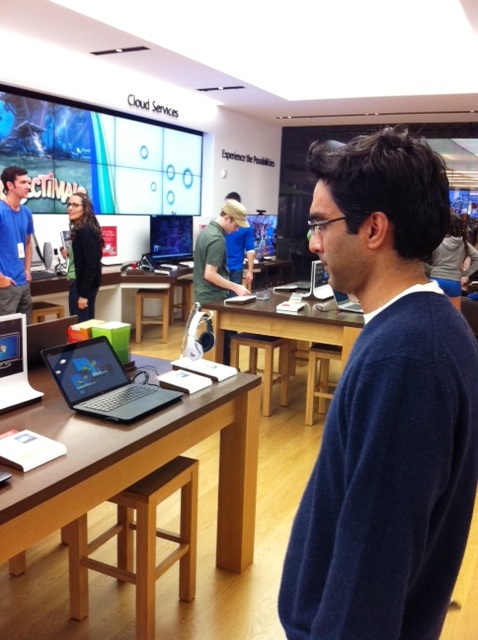 >gasp!< "Microsoft store"? You guys are so cool, so chic, with his iproducts and all I would expect him to want to peruse the Apple store. Please tell me Ali held vigil at the Apple store yesterday, otherwise he's not ask geeky as he really is.
