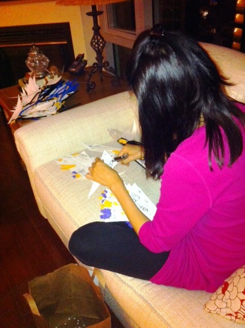 3. I do freelance work cutting out hundreds of 1st grade spelling test flags.