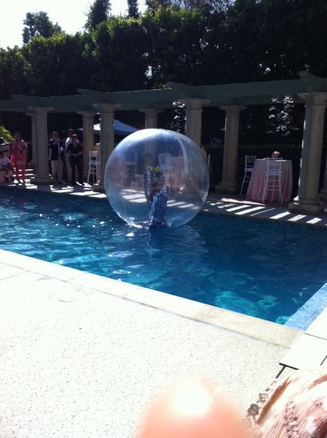 Omg…a woman in a bubble?! I don’t know whether to laugh or feel really, really bad. That party looks pretty swanky, though!