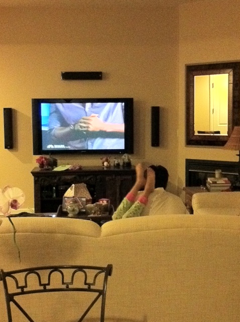 The feet on Ali’s back…priceless. It could be Dudette and Hubby (except Hubby would be totally engrossed in the game and know every player on both sides).