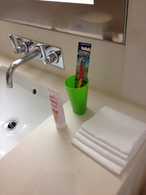 Talk about the right decision. The hotel was even kid friendly! They had everything from kid’s toothpaste and bath toys, to a Maya-sized robe/slippers and a personalized cookie. I was seriously impressed. And so was Maya.