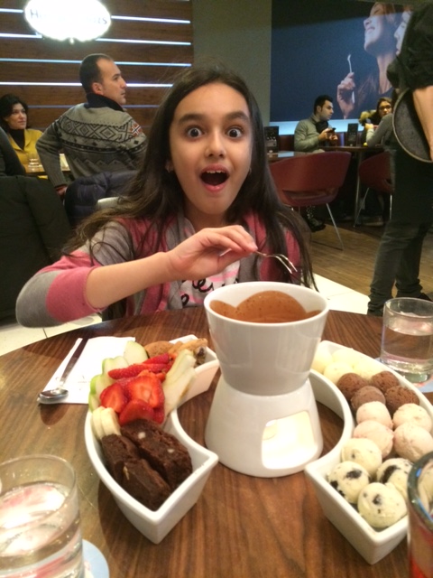 I love how the healthier pieces of the Haagen Dazs fondue set are on one side while all the ice cream scoops are on the other 😛 . Love Maya’s expression in that pic too 🙂