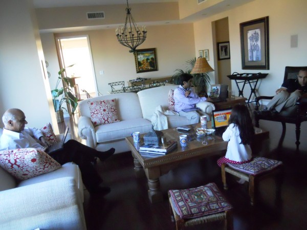 My dad is on his laptop, Maya is on Ali's laptop, my brother is typing away on his Blackberry, and Ali is on my computer with my iPad in his lap.